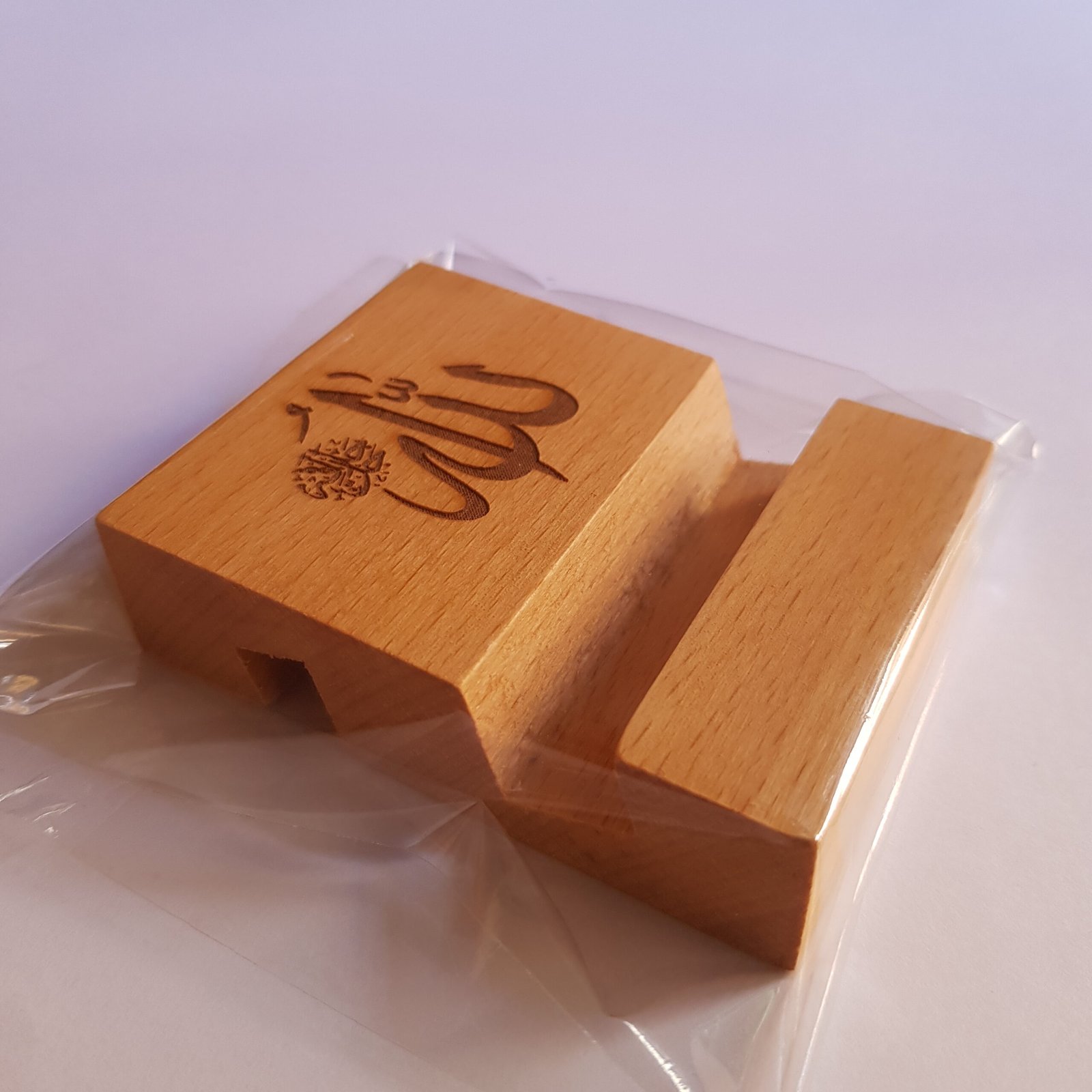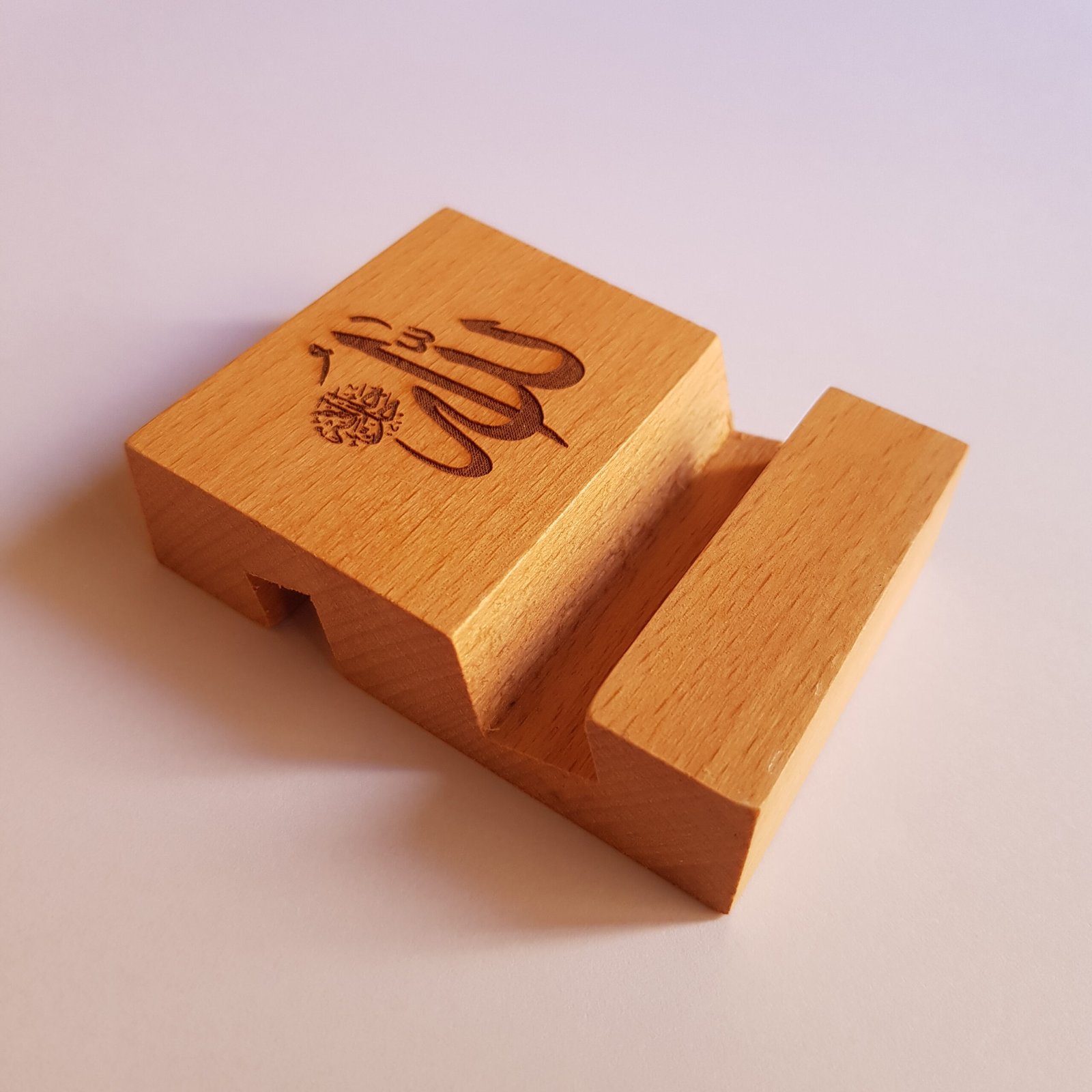 Support pour smartphone et tablette, porte cartes de visite, en bois de hêtre.